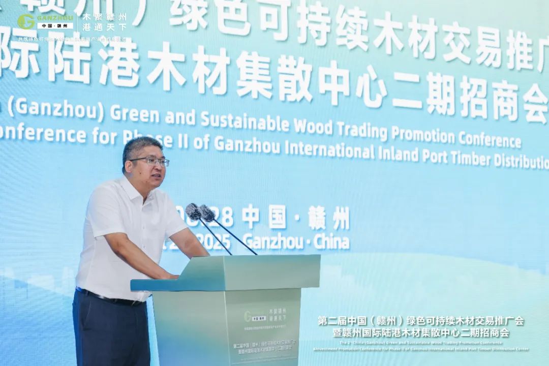 8月28日上午,由木材节约发展中心,赣州国际陆港管委会主办,赣州国际陆港集团有限公司、赣州市德宁展览有限公司承办的第二届绿色可持续木材交易推广会暨赣州国际陆港木材集散中心二期招商会在赣州成功开幕。本次大会以“木聚赣州,港通天下——共筑绿色可持续木材与家具产业合作新生态”主题,依托南康千亿级家具产业集群与赣州国际陆港的物流枢纽优势,积极搭建高效供需对接平台,旨在为南康家具企业提供可靠的绿色木材供应商清单,探寻木材供应商-加工商-家具制造商深度协作模式,促成技术供需方合作,为产业集群提供可持续木材供给保障,助力南康家具行业高质量发展。